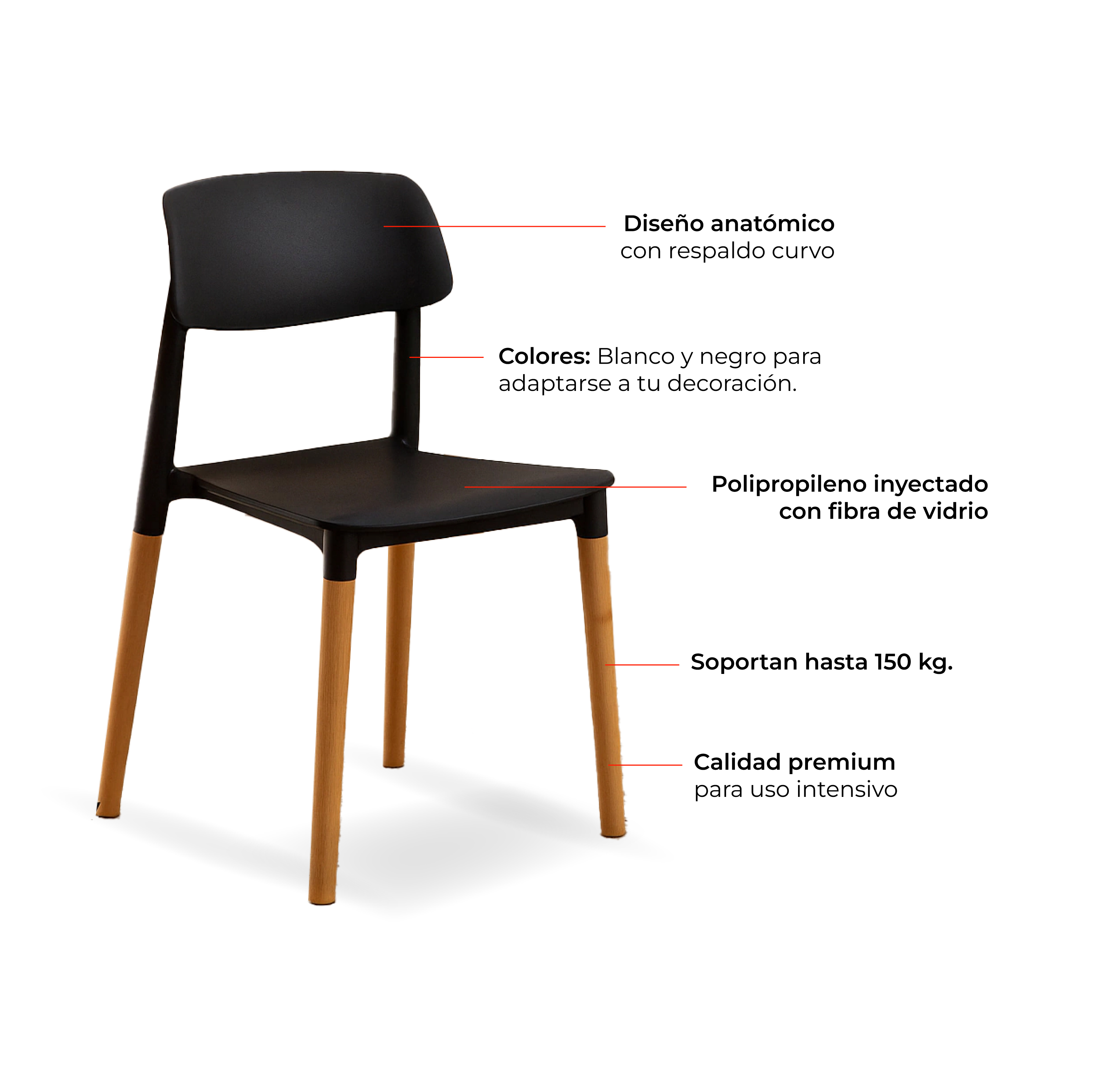 - Diseño anatómico con respaldo curvo, brindando máximo confort.