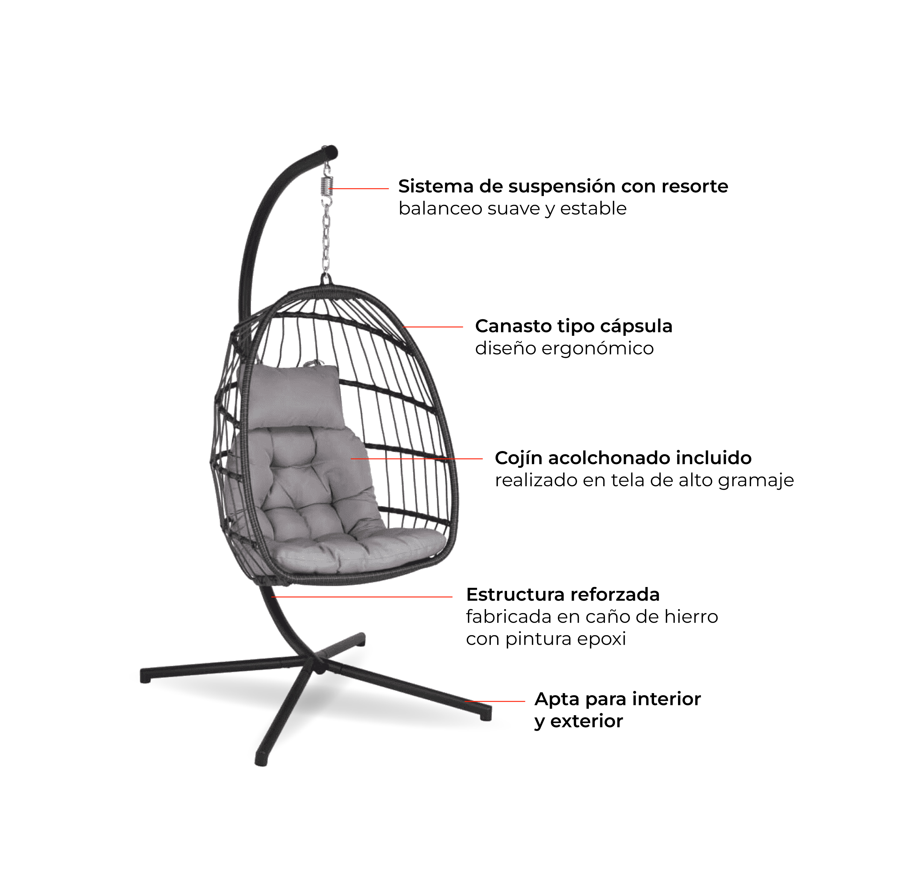 Transformá tu hogar en un oasis de relax con el Sillón Hamaca Colgante Swing de Baires4. Su diseño moderno y elegante combina a la perfección comodidad, seguridad y estilo, convirtiéndolo en el complemento ideal para jardines, terrazas, galerías o interiores.